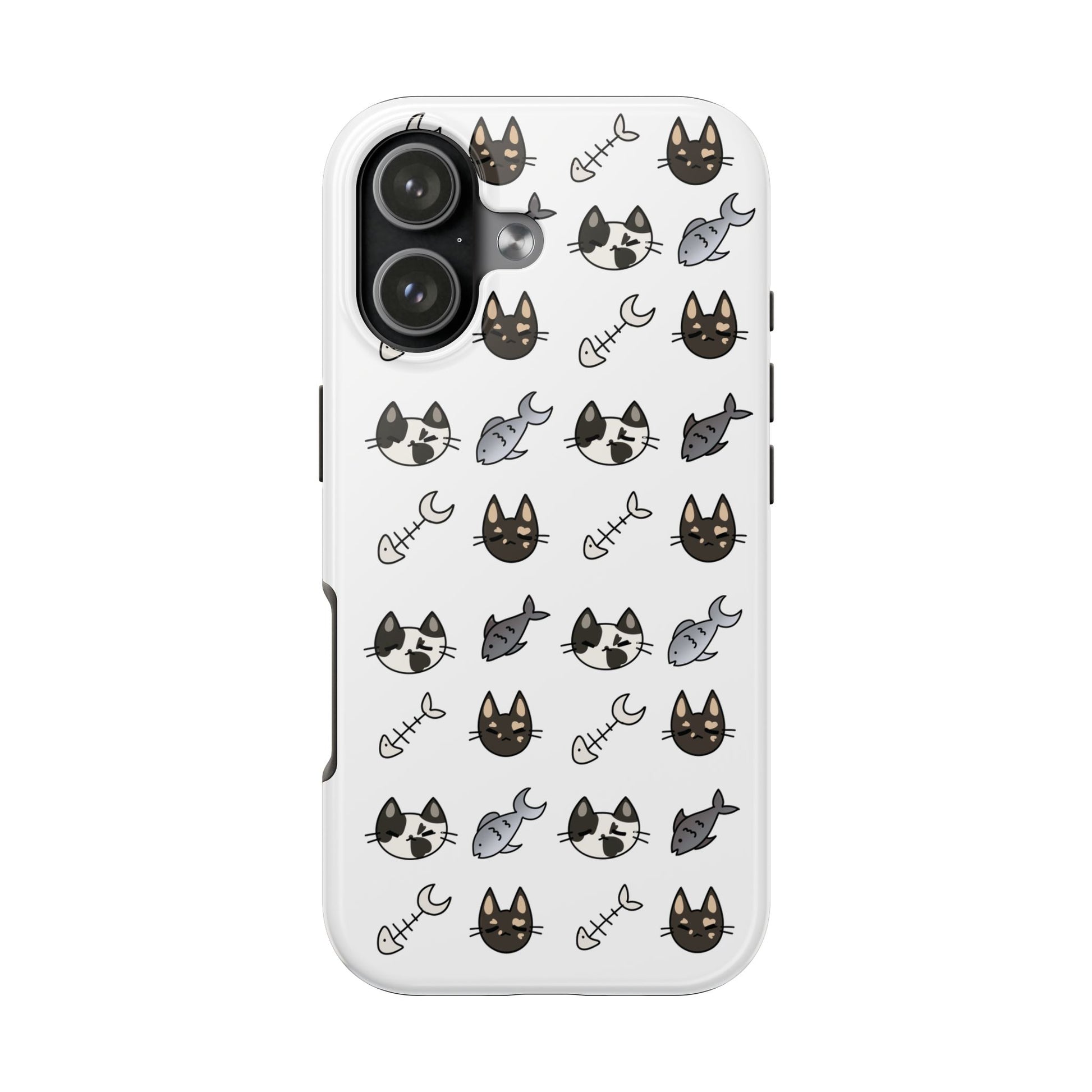 Cute Cat Pattern Tough Phone Case — Kawaii Cat & Fish Bone Design